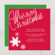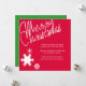 These modern Christmas greeting cards feature a solid red background with large "Merry Christmas" text and white snowflake decorations.