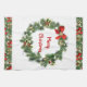Decorate your kitchen with this Christmas wreath on a white kitchen towel. This towel features a red and green design with a Merry Christmas greeting.