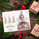 Celebrate the Christmas holiday with this fun, customizable postcard. The cream coloured background is accented with a green pretty Christmas trees with red jet fighter ornaments and customizable text at the bottom to add your family name. To the right, add your favourite family photo, creating a perfect balance of festive. Flip over the card to enter personalized name, address, and special holiday greeting, or use ours!