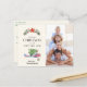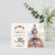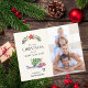 Celebrate the Christmas holiday with this fun, customizable postcard. The cream coloured background is accented with an airplane carrying a pretty Christmas tree on its wings and customizable text at the bottom to add your family name. Sitting above the illustration is a red star layered on top of a green wreath. To the right, a customizable option to add your favourite family photo, creating a perfect balance of festive. Flip over the card to enter personalized name, address, and special holiday greeting, or use ours!