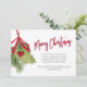 This design features a Merry Christmas holiday holly greenery invitation with botanical winter leaves foliage leaf, QR code website online text, Facebook social media event page, winter holly berry berries mistletoe, watercolor red and green foliage, a stylish elegant calligraphy script font, festive party celebrate celebration, a classic traditional holiday illustration, a Christmas holiday simple party invite
