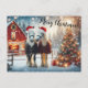 Merry Christmas with Two Horses, Christmas Tree and Red Barn Postcard
