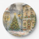Merry Christmas in Paris Watercolor Eiffel Tower Paper Plate