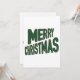 This invitation showcase the words "Merry Christmas" in a bold print font plus green letters red outline with different size letters in the background in this X-mas theme and style. Printed on a classic, all around paper 17.5 pt thickness with an uncoated matte finish with an eggshell texture made and printed in the USA with "Merry Christmas" printed on the back.