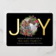A stunning Merry Christmas Joy Real Foil Detail Holiday Photo card from Ricaso - designed with a bold chunky foil typography text to the front and a photo placement template with a delicate wreath surround - this beautiful modern design is sure to be a hit with family and friends .. easy to add your own text and photo - Send your greetings in style this holiday with a personalized card