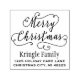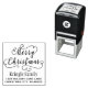 Custom self-inking stamper features Merry Christmas in script writing with return address that can be personalized.