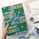 Get ready for Christmas with custom name wrapping paper! This large-scale pattern features sports jersey inspired typography, with a retro block font, trendy script, and a star motif. Personalize the template with the recipient's name and a holiday greeting, or adapt it for any special occasion. This festive design is suitable for all ages, from kids and teens to family and friends. A seamless pattern gift wrap, available with a matte or glossy finish. Printed colours: orange yellow gold, dark green and white.