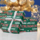 Get ready for Christmas with custom name wrapping paper! This large-scale pattern features sports jersey inspired typography, with a retro block font, trendy script, and a star motif. Personalize the template with the recipient's name and a holiday greeting, or adapt it for any special occasion. This festive design is suitable for all ages, from kids and teens to family and friends. A seamless pattern gift wrap, available with a matte or glossy finish. Printed colours: dark green, red and white.