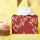 Merry Christmas in a modern elegant script in a metallic gold look on a stylish red background.