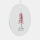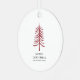 The design features a modern minimalist red hand drawn Christmas tree on white background with modern typography. Simple, stylish holiday ornament with black and white typography. Personalize it with details. Easy to edit. Perfect for festive season.