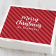 This holiday Christmas design features merry Christmas holiday party red, a striped table cocktail décor, minimalist red modern script, merry Christmas calligraphy typography, holiday party dinner tableware dinner, luncheon dinner cocktail, a festive whimsical red and white, happy holidays seasonal, Christmas holiday party paper napkin, Christmas party supplies