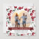 Merry Christmas Modern Floral Photo Holiday Cards features your favourite photo on a red, white and green watercolor floral pattern background with the text "Merry Christmas and happy New Year" in stylish script typography in the shape of a snowglobe. Perfect for Christmas to send to friends and family. Available as a paper Christmas holiday card and as a instant download printable digital card ecard. Designed by ©Evco Studio www.zazzle.com/store/evcostudio