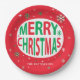 Merry Christmas Modern Red Holiday Personalized Paper Plate