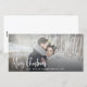 This elegant, rustic photo Christmas card says "merry christmas" in white script typography.