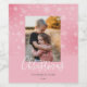 Merry Christmas Modern Snowy Winter Pink Photo Wine Label