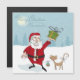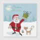 This modern holidays design features a cartoon of a whimsical Santa Claud with his cat on a winter background as the snow falls with the text "Merry Christmas" in stylish calligraphy. Fabulous Christmas gifts.. #christmas #holidays #seasonal #festive #winter #snow #snowflakes #cat #santa #santaclaus #modern #chic animals #cool #fun #merry #merrychristmas #illustration #gift #christmasgifts #greetings #magnet #christmascards #personalized #personalised #name #stationery #holidaycards