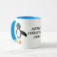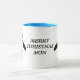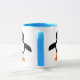 This fun festive mug would make a great gift for mom. It features a cute penguin character with a white tummy, big blue eyes with black pupils and cute orange feet and beak. This charming little winter bird is sure to delight any mom. The image is on both sides of the mug. In between is the message "Merry Christmas Mom, this text is customizable so you can turn this into a lovely personalized gift for your mom or another relation or friend. The design is shown on a blue and white ringer style mug, but is also available on many more styles and colours of mug, including beautiful frosted glass mugs and convenient travel mugs to keep hot drinks warm through the winter.