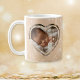 Make this holiday season extra special with our custom Christmas mug for mom! Featuring a beautiful gold and white snowflake background, this festive mug showcases a heart-shaped photo of your baby, adding a personal and heartfelt touch. The words Merry Christmas mom is displayed, making it a perfect gift that combines warmth, love, and holiday cheer.