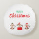 Merry Christmas Monkey Wearing Christmas Hat Round Pillow