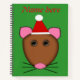 This awesome spiral notebook features a funny cartoon of a Christmas mouse with big round eyes, pink ears, a small pink nose and cute little twitchy whiskers. The mouse is wearing a red and white Santa hat ready for Christmas.
