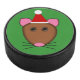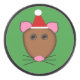 This awesome hockey puck features a funny cartoon of a Christmas mouse with big round eyes, pink ears, a small pink nose and cute little twitchy whiskers. The mouse is wearing a red and white Santa hat ready for Christmas.