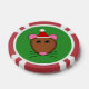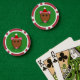 This awesome set of poker chips features a funny cartoon of a Christmas mouse with big round eyes, pink ears, a small pink nose and cute little twitchy whiskers. The mouse is wearing a red and white Santa hat ready for Christmas.