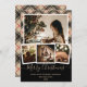 Merry Christmas! Customizable photo flat card featuring black, beige and red plaid and script typography on front. Personalize by adding 4 of your favourite photos. Add your family greeting, your names and year to the front bottom of this Christmas Card.