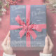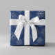 This design features a merry Christmas navy blue wrapping paper, with a stylish sparkle, a simple pattern, a classic snow, a traditional winter, with a minimalist rustic, calligraphy script, typography design and silver snowflake, with family name.