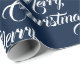 Merry Christmas navy blue and white custom script calligraphy elegant gift Wrapping Paper.