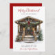 Cette aquarelle rustique Joyeux Noël nouvelle maison pour les vacances carte de faire-part avec une porte d'entrée en bois décorée de façon festive avec des pignons et des arbres, une couronne, et arcs de vacances rouges serait parfait pour envoyer à vos amis et votre famille maintenant que vous avez déménagé dans une nouvelle maison. Le sentiment est personnalisable. Obtenez assez pour que tous ceux que vous connaissez et aimez aient votre nouvelle adresse. Ils seront tellement excités par votre grand mouvement !