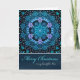 Boho Christmas card for your niece features an intricate bohemian design with snowflakes in rich hues of blue and turquoise on a dark background with a texture effect to give a bit of a "worn and weathered" look.