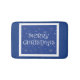 Merry Christmas on Blue with Snowflakes Bath Mat