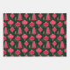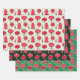 Festive Red Merry Christmas ornaments on a background of pine branches and holly. Three sheets of wrapping paper in complementary xmas red and green colours. Great for decoration and gift giving.