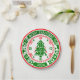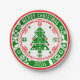 Modern Bauhaus-style Christmas design featuring a bold geometric tree in festive red and green.