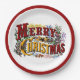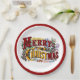 Paper plates with decorative words Merry Christmas, flowers, Holly and Berries from the Currier and Ives 1876 Merry Christmas message.