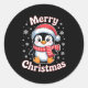Merry Christmas Penguin Cute Santa Hat Snowflake H Classic Round Sticker