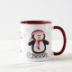 This cute mug features an adorable sledding penguin and your own personalized text. The penguin is dressed in a Holiday red and pink scarf and hat, and is coasting on a sled. A few snowflakes drift down. The image is repeated twice, with three text fields for your custom text in between. Perfect for big and little kids during the Christmas season!