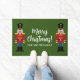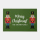 Merry Christmas personalized Holiday nutcracker guard doormat with family name and seasons greeting. Custom door mats for the winter Holiday season. Add your own welcome message, family name, monogram, surname or funny quote. Custom green colour background. Stylish hand lettered script calligraphy typography design. Create your own entry carpet rug for front door / entryway or hall / venue / shop or store. Customizable home decor / decorations for your house or office. Also great for Santa's workshop.
