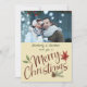 Spread some holiday cheer with this flat panel photo card that features the message "Merry Christmas" in festive red script lettering with evergreen and pinecone accents. The backs of these cards have a simple doodle style red snowflake pattern against a burlap style background. The rustic style of these Christmas cards is perfect for showing off your favourite outdoors and holiday photos.
