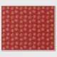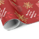 Festive personalized Christmas holiday wrapping paper design with gold winter snowflakes and red glitter Xmas present and red ribbon bow on a plain green customizable background, personalize this design by adding your family name or Xmas text greeting and adding your favourite family photo. PLEASE NOTE the gold is not metallic.
