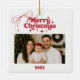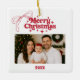 Merry Christmas photo bow red hand-drawn retro Ceramic Ornament