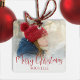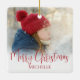 Merry Christmas Photo Calligraphy Greed Red Plaid Ceramic Ornament