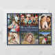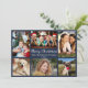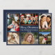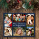 Modern photo collage blue holiday card featuring "Merry Christmas" in an elegant white script, 6 pictures of your favourite people and moments from the last year and your family name and the year in white lettering.