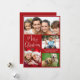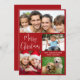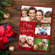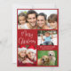 Elegant red holiday card featuring your custom photo collage, "Merry Christmas" showcased in a stylish white script and your family name and the year in modern white typography.
