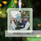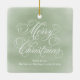 This design features a merry Christmas ornament with a minimal minimalist, a classic photo, with elegant calligraphy script typography, a stylish trendy, watercolor green background with a modern minimalist clean simple style, an elegant chic, holiday gift idea.