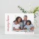 This elegant holidays design features the text "Merry Christmas" and family name in modern red script. Add your favourite photo to create your personalized Photo Christmas Cards. Personalize by editing the text in the text box provided. The reverse is a chic burgundy with gold stars.