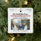 This design features a merry Christmas, photo, cute typography ornament, with red and white candy cane stripes, a newspaper newsletter design, with a classic, minimal minimalist, modern clean simple style, Matches the north pole times collection, makes a unique and whimsical gift idea.
