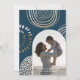 This beautiful Christmas card features a vibrant blue print with circular geometric shapes and a modern arch shaped photo. The back features an editable personal message on a white background.
