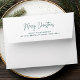 Return address envelope featuring the text "Merry Christmas" in a handwritten style script font with the return address below.