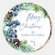 Merry Christmas pine wreath blue winter berries Classic Round Sticker